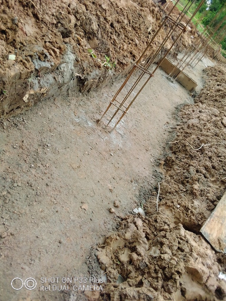 (5: Mount your columns and cast your column bases and foundation footings with concrete without water with a concrete ratio of 1:2:4 to a thickness not less than 100mm
