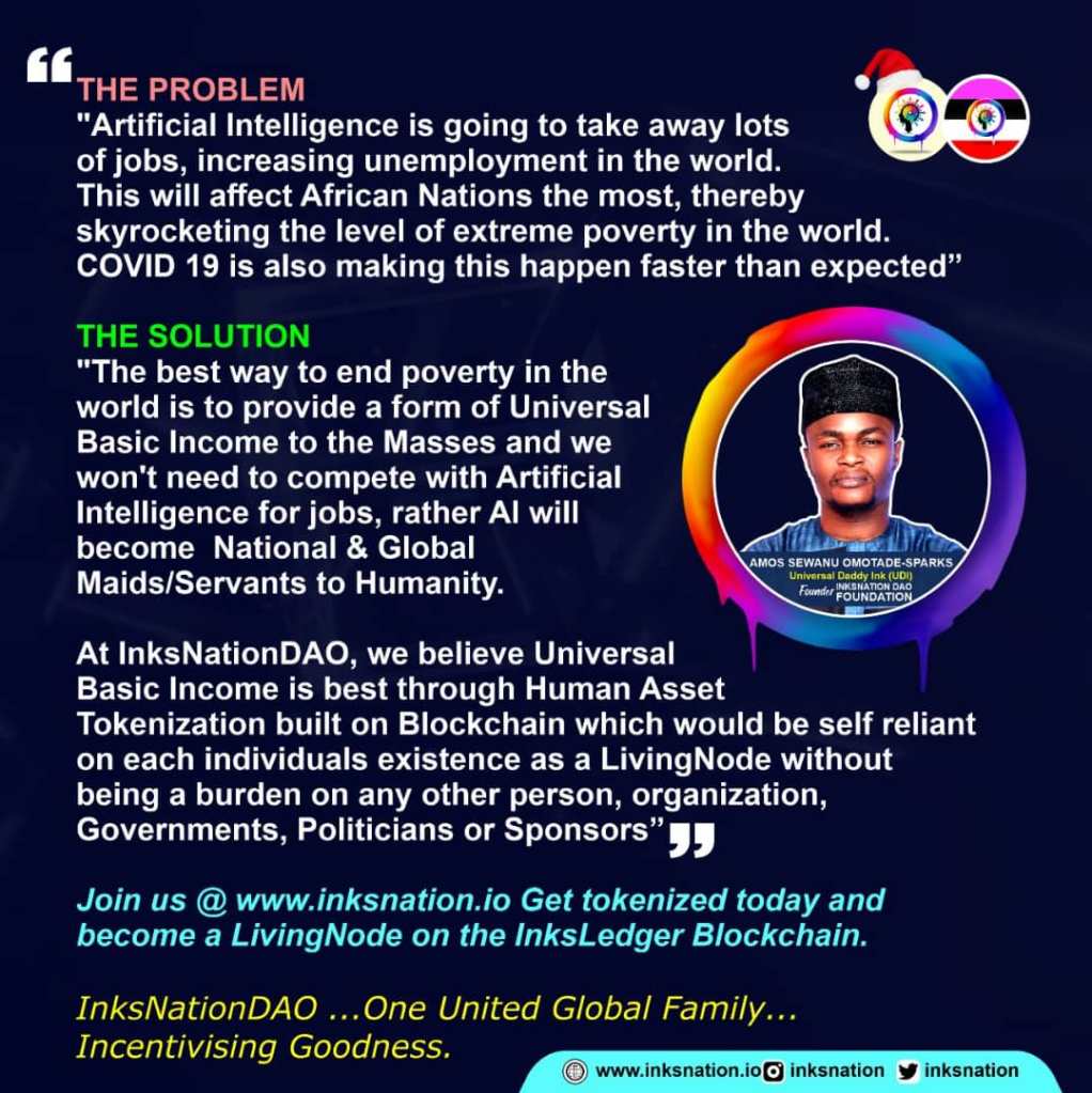With regards on how will people survive when AI(artificial Intelligence) might have taken over everything…Mr Amos Omotade Sparks founder Inksnation DAO Foundation came up with a timely innovation called PINKOIN. Pinkoin is a Userbased Crypto currency designed to end poverty in any country within 9 months.